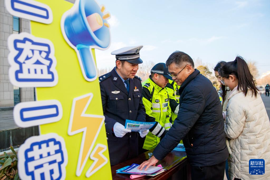 1月9日,在河南省商丘市睢县警民互动活动现场,睢县公安局交警大队民警为市民讲解道路交通安全的法律法规。