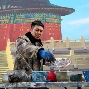 1月6日,在河南商丘睢阳区吴营村,吴承言在调色。