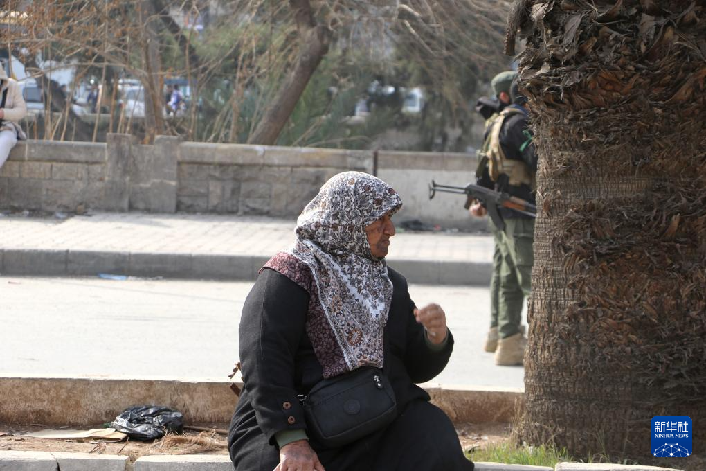 1月8日,在叙利亚阿勒颇市,叙过渡政府士兵在交流。