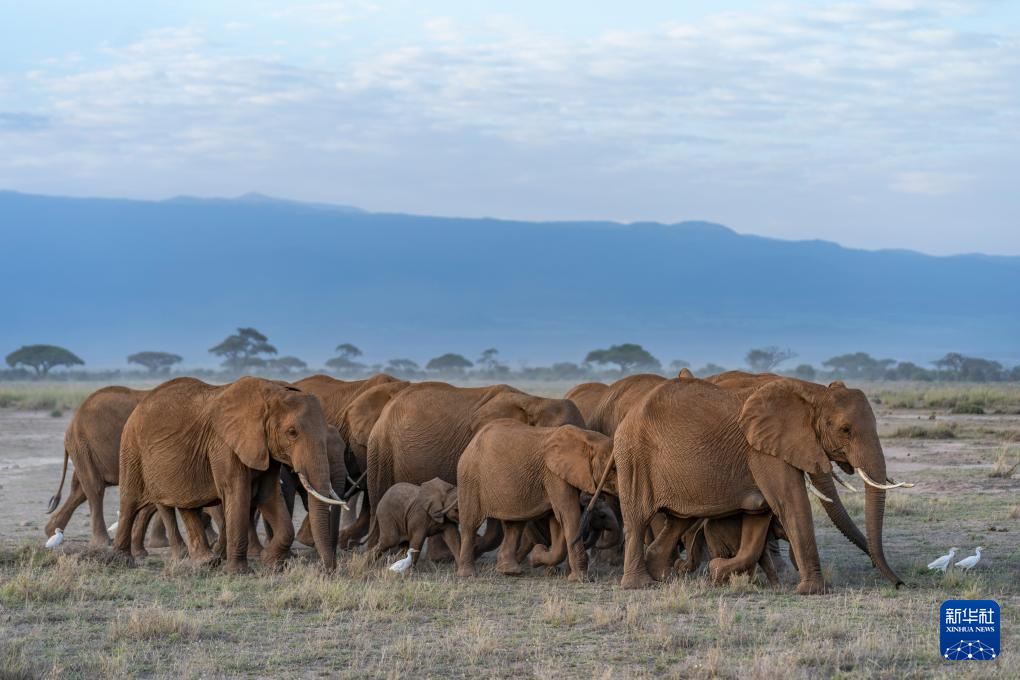 这是1月8日在肯尼亚安博塞利国家公园拍摄的象群。