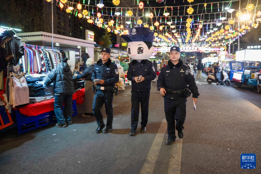 1月8日,金盾苑警务站民警刘洋(右一)和同事在拉萨高新区巡逻。