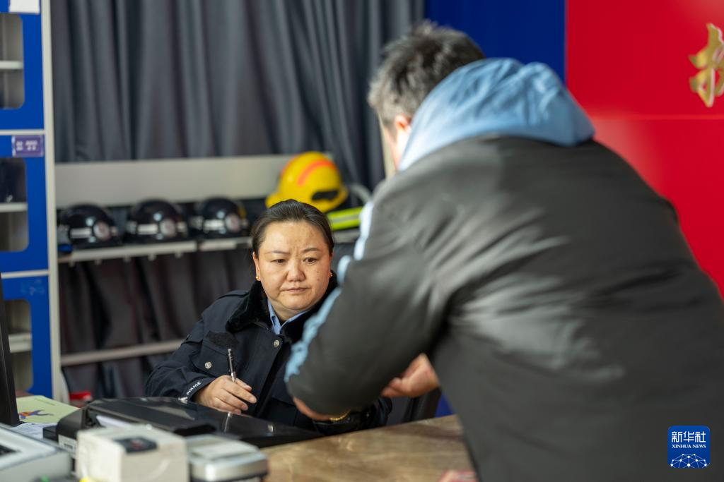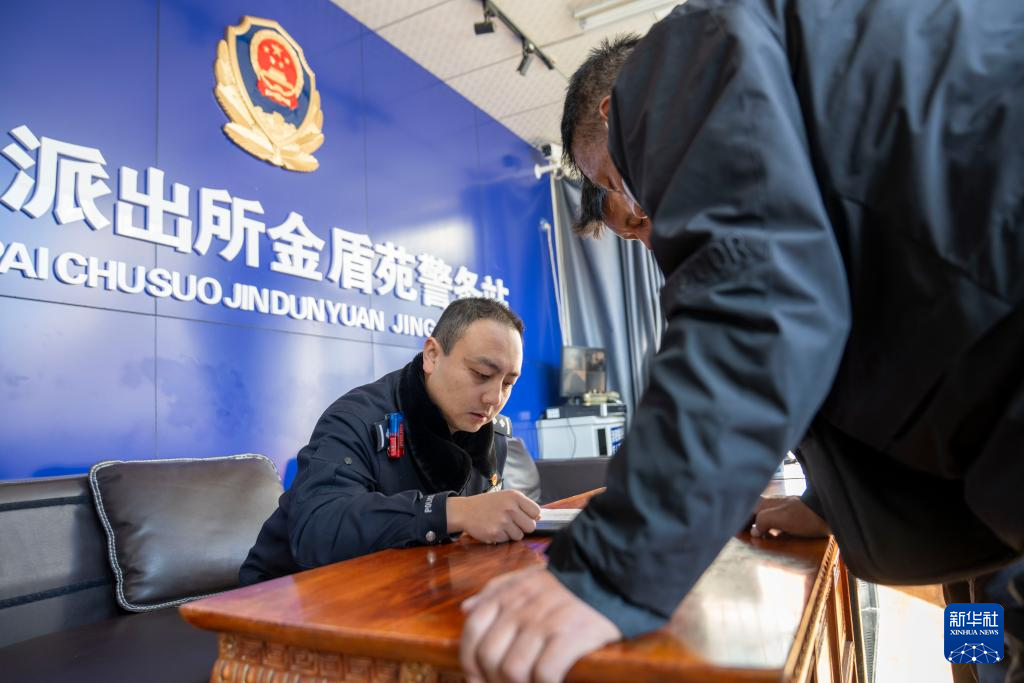 1月8日,金盾苑警务站办证员曾江(左)为群众办证。