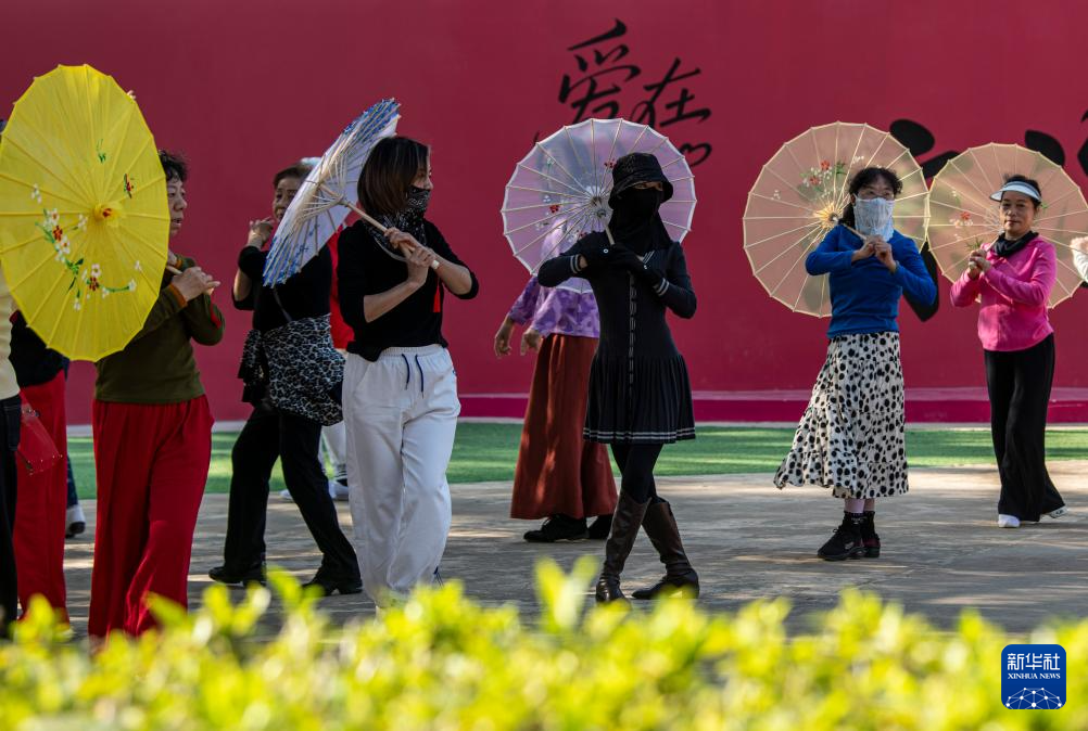 1月9日,人们在海南省琼海市万泉河公园排练歌舞。