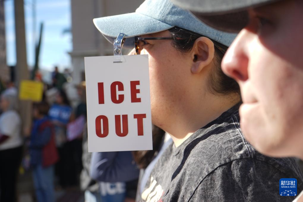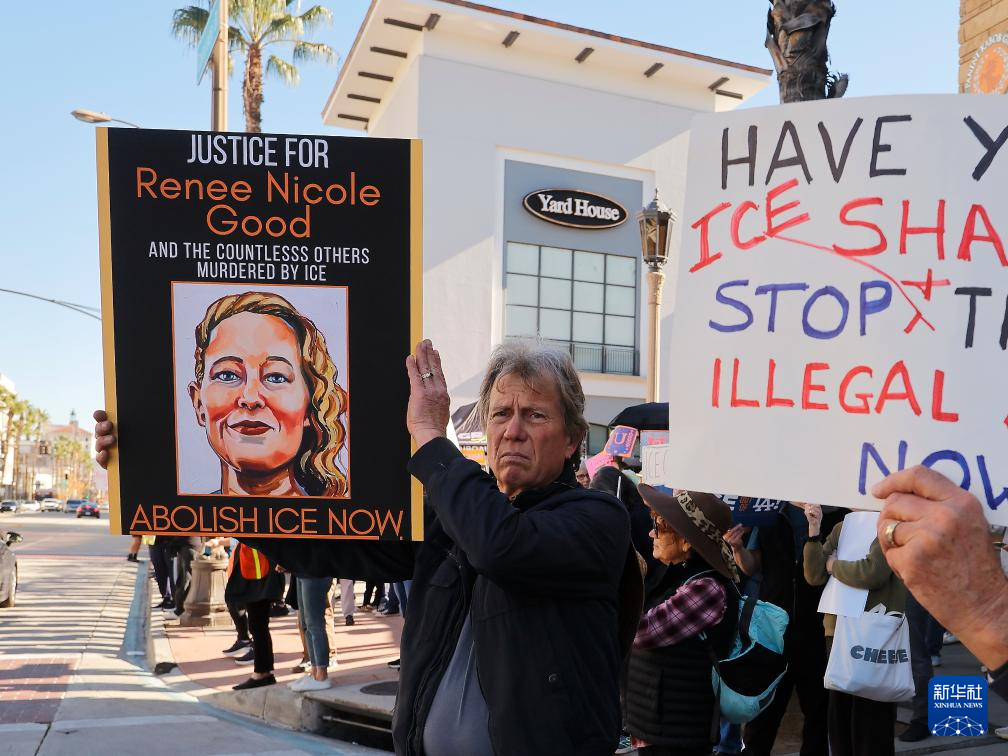 1月10日,在美国加利福尼亚州洛杉矶县帕萨迪纳市,一名抗议者手持标语牌参加抗议活动。