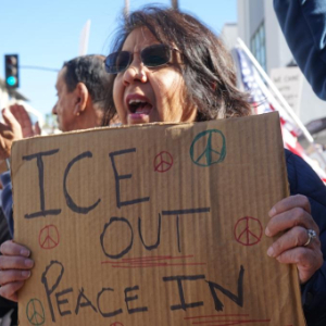 1月10日,人们在美国加利福尼亚州洛杉矶县卡森市参加烛光守夜活动,悼念被美国移民与海关执法局(ICE)执法人员射杀的美国公民蕾恩·妮科尔·古德。