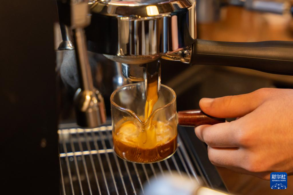 咖啡师在老挝首都万象一家咖啡店制作咖啡(2025年12月22日摄)。