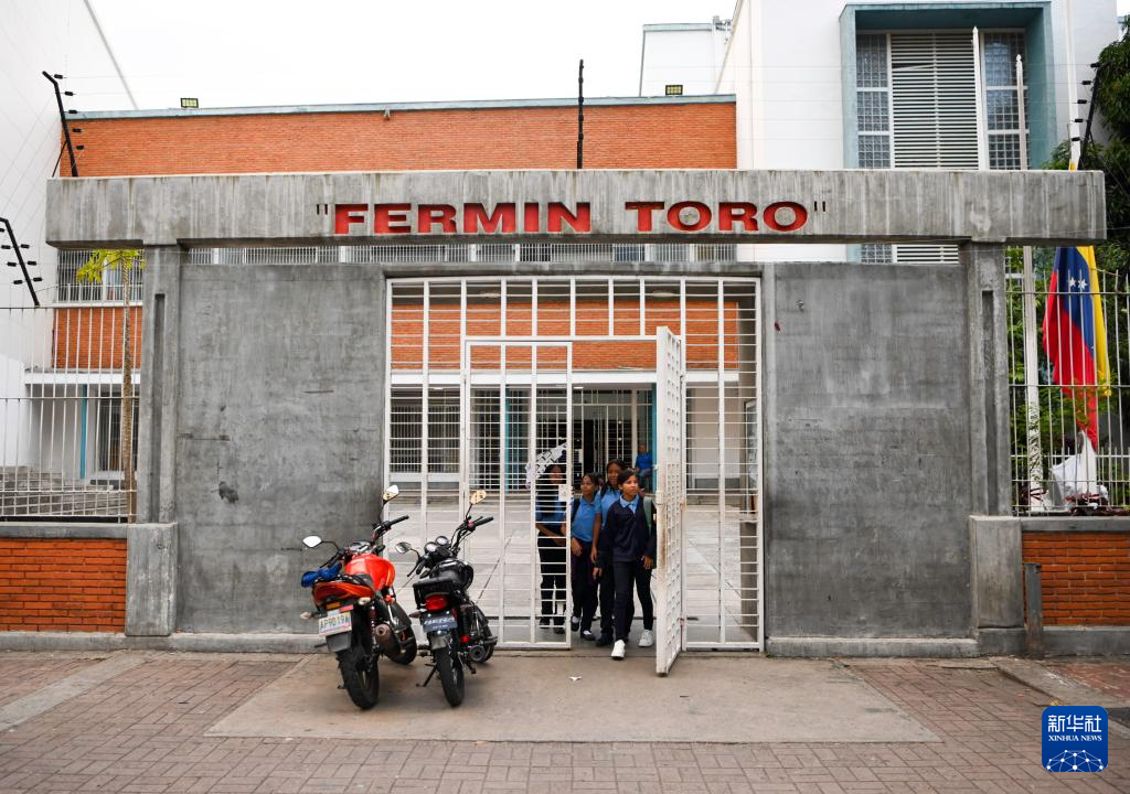 1月12日,在委内瑞拉首都加拉加斯一所公立学校,学生放学后走出校门。