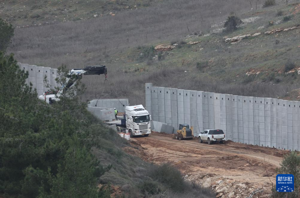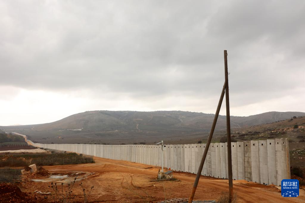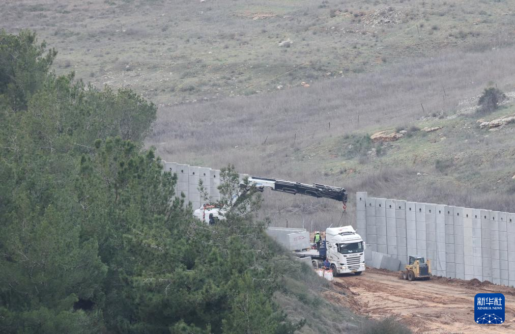 1月12日,在以色列-黎巴嫩边境沿线以色列一侧,施工团队在建设混凝土隔离墙。