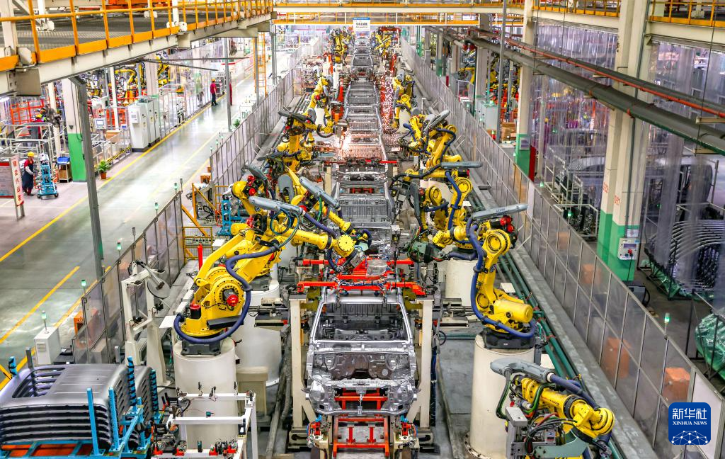 2025年12月30日,在河南省商丘市豫商经济技术开发区现代装备制造产业基地的一家新能源汽车企业,工人在组装车间工作。
