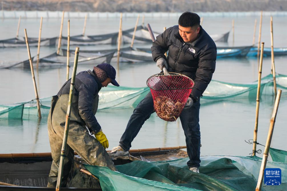 1月15日,东平街道蟹农在捕捞大闸蟹。