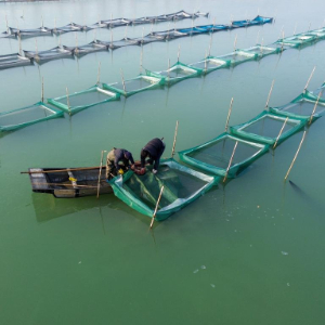1月15日,东平街道蟹农在蟹池内劳作(无人机照片)。