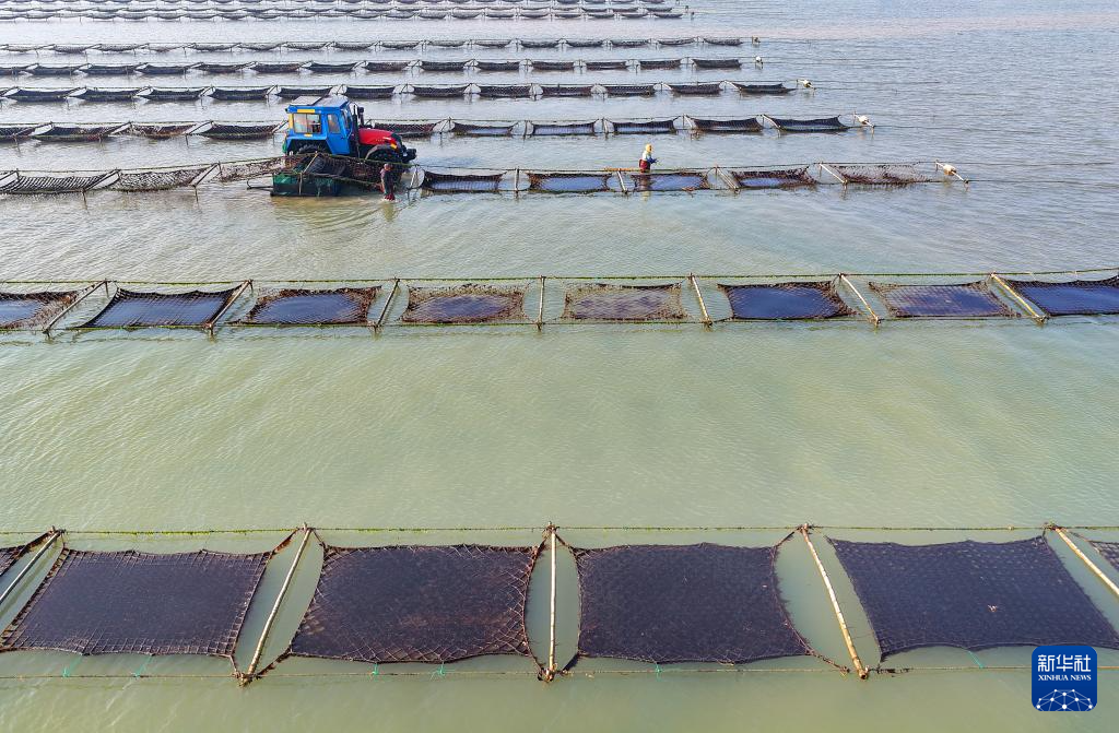 江苏如东:收获头水紫菜-新华网