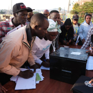 1月15日,在乌干达首都坎帕拉一处投票站,人们排队等待投票。