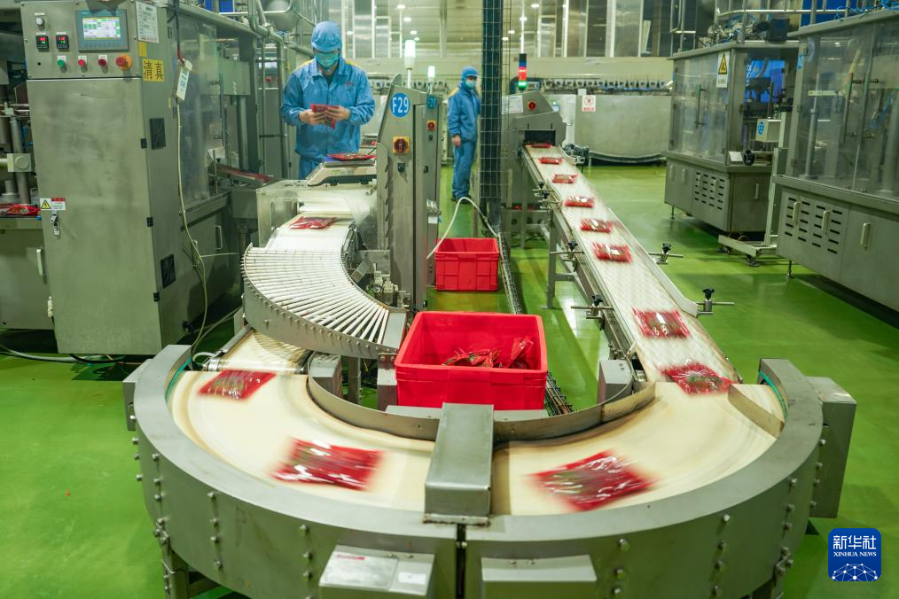 位于四川眉山天府新区的四川川娃子食品有限公司智能生态工厂,采用“手工 + 智能”双轨生产,手工遵循传统核心工艺,智能生产沿用非遗配方,二荆条辣椒在生产线上经过设备清洗、传统工艺烤制、精准配比、无菌封装等11道工序,制作出的烧椒酱保持传统风味,受到市场青睐。