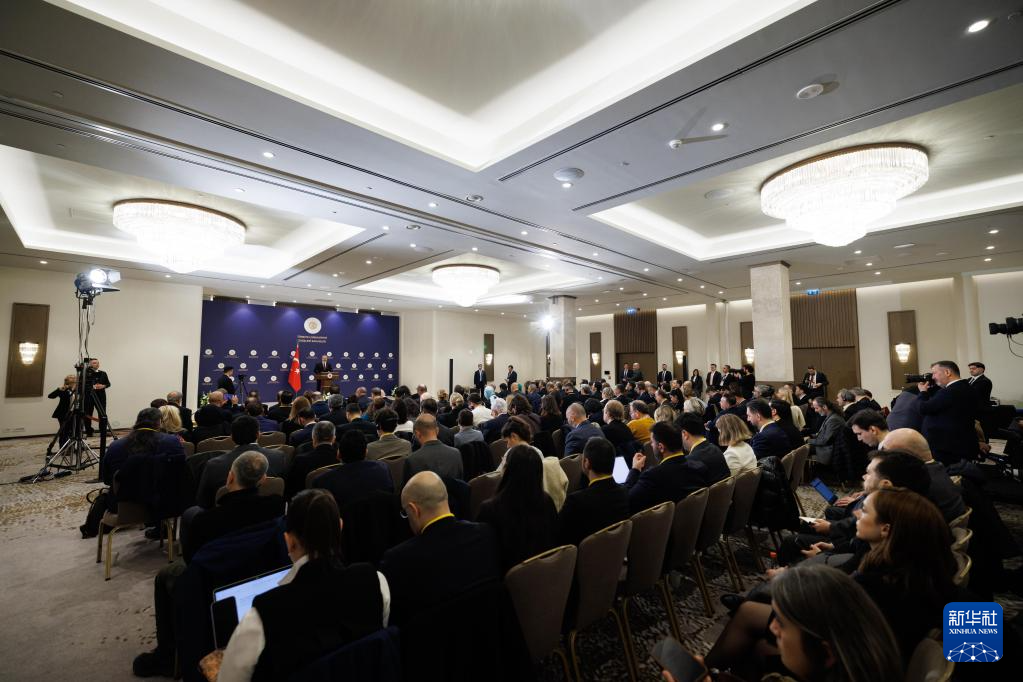 1月15日,土耳其外长费丹在土耳其伊斯坦布尔举行的年度记者会上讲话。