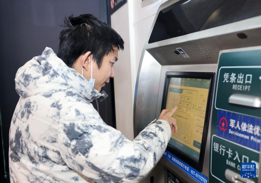 1月19日,旅客在武汉站东广场候车厅的自动售票机上购买车票。