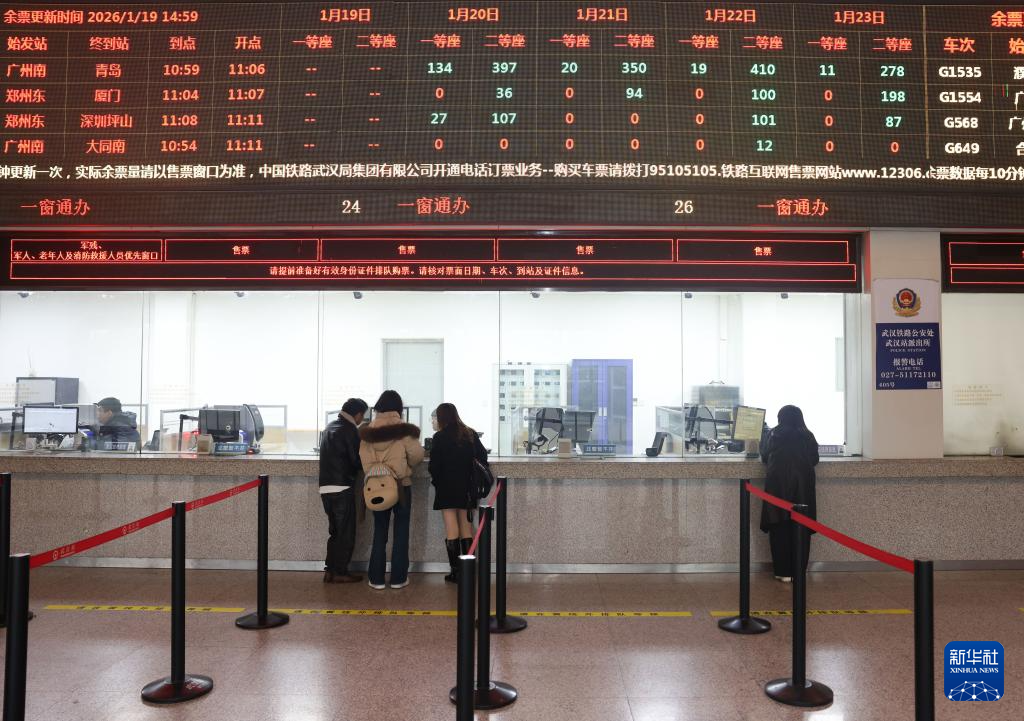 1月19日,旅客在武汉站售票厅购买火车票。