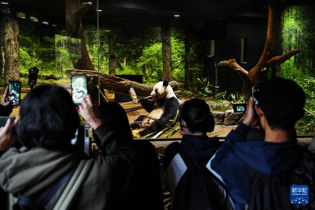2025年12月25日,在日本东京的上野动物园,游客拍摄大熊猫“晓晓”。