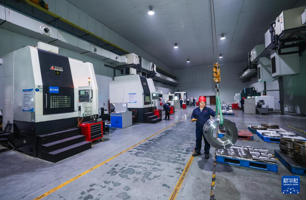 1月20日,在诸暨市璜山镇的浙江申发轴瓦股份有限公司数字化车间内,工人操作设备加工轴承。