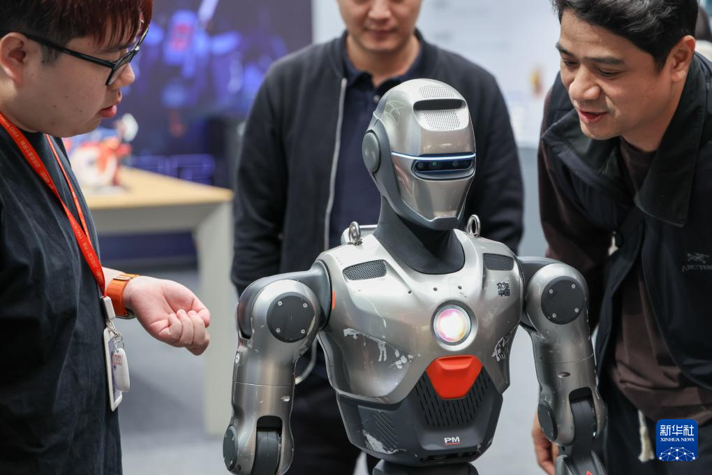 1月5日,顾客在深圳市南山区的INNO100全球创新旗舰店观看机器人产品演示。