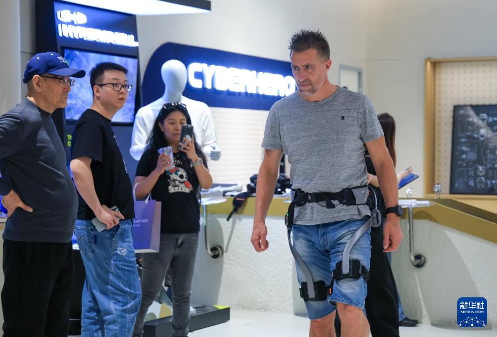 1月18日,顾客在深圳市南山区的INNO100全球创新旗舰店体验外骨骼穿戴设备。