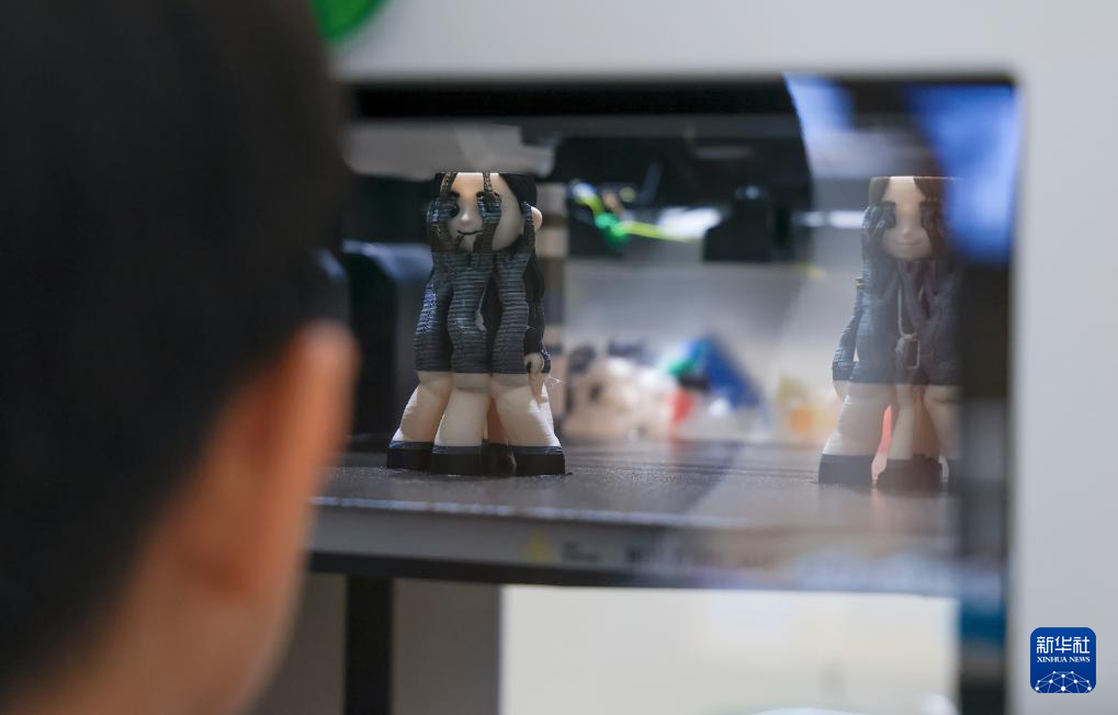 1月18日,顾客在深圳市南山区的INNO100全球创新旗舰店“万物定制工作站”参观3D打印机工作。“万物定制工作站”拥有3D打印机等各类DIY设备,可以进行产品的个性化定制。