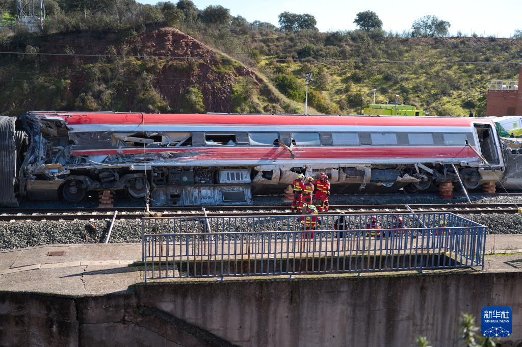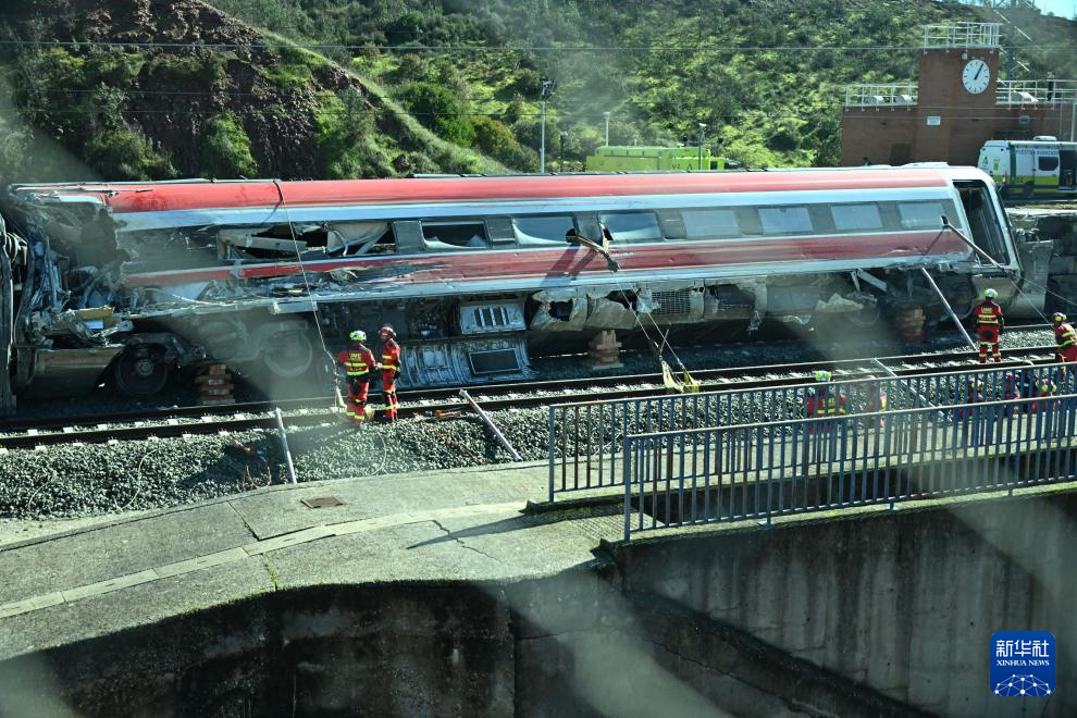 1月20日,救援人员在西班牙科尔多瓦省阿达穆斯的高铁事故现场工作。