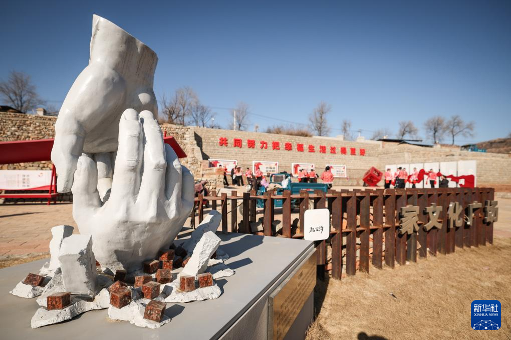 这是1月20日拍摄的祝家沟村家文化广场前的雕塑作品。