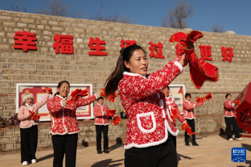 1月20日,村民在祝家沟村家文化广场练习舞蹈。