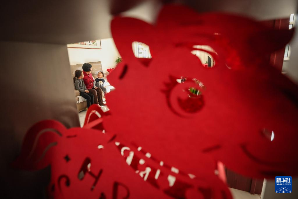 1月20日,村民查恩英(中)与孙子孙女在家中。