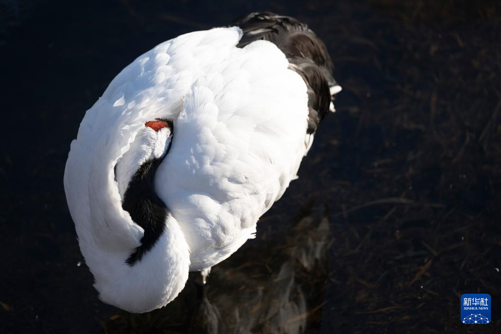 1月21日,丹顶鹤在黑龙江扎龙国家级自然保护区内栖息。