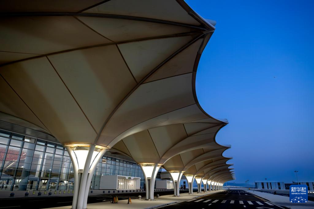 这是厦门翔安国际机场航站楼出发层夜景(1月20日摄,无人机照片)。