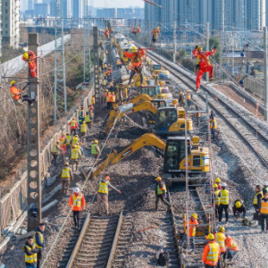 1月22日,中国铁路上海局集团有限公司统筹组织运营和施工单位,联合对京沪线林场站进行了线路封锁施工。经过近千名施工人员协同作战、连续攻坚,京沪线引入南京北站枢纽第一阶段拨接施工顺利完成。