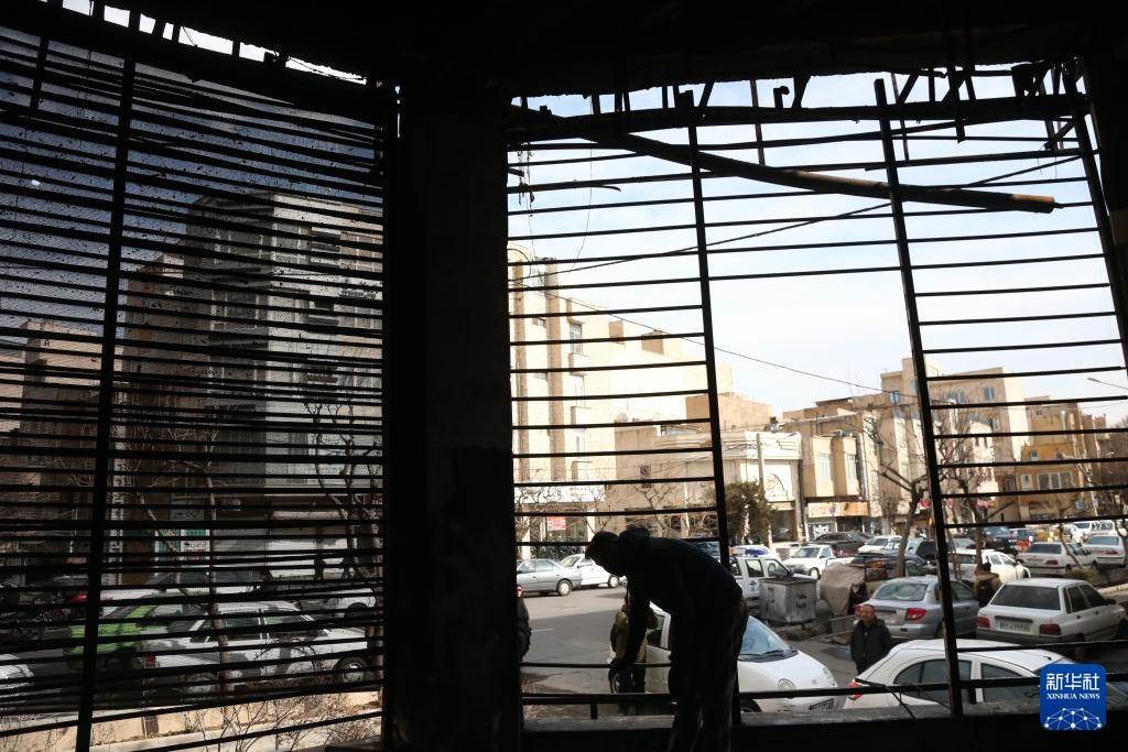 1月21日,在伊朗首都德黑兰,车辆经过在近期骚乱中受损的一处税务局建筑。