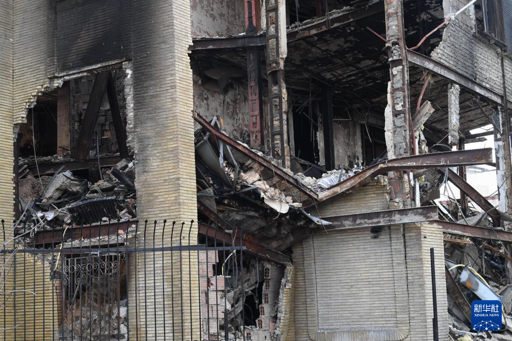 这是1月21日在伊朗首都德黑兰拍摄的在近期骚乱中受损的一处税务局建筑。