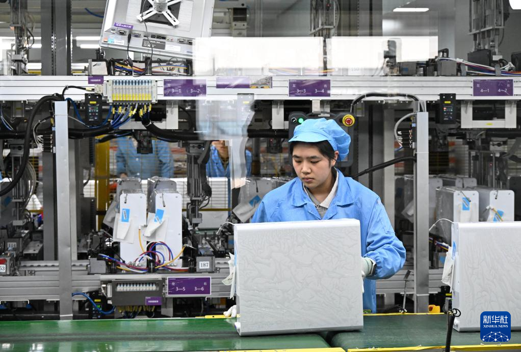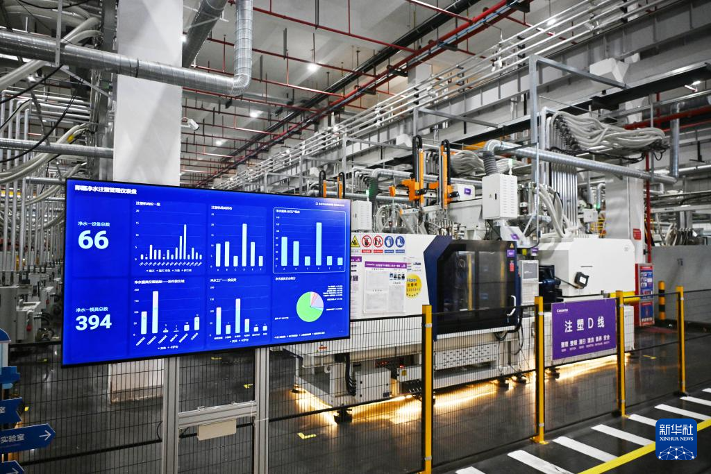 在海尔青岛净水互联工厂,可视化管理平台高效管理各生产工序(1月21日摄)。