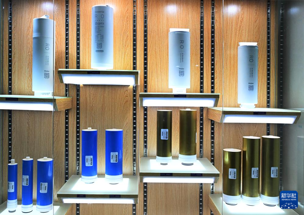 海尔青岛净水互联工厂生产的不同标准的净水滤芯(1月21日摄)。