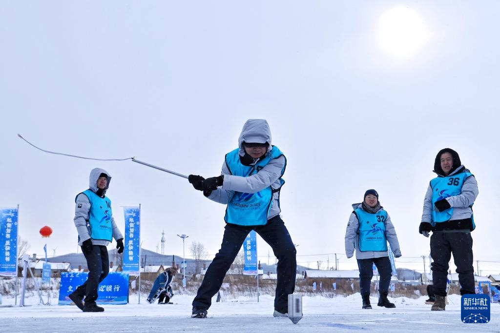 1月23日,赫哲族群众在街津口赫哲族乡冬捕活动现场开展民俗体育活动。