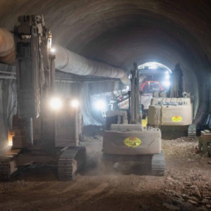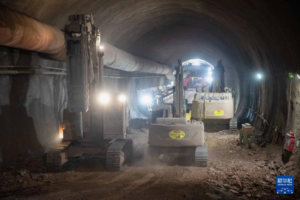 1月23日,工人驾驶大型机械在成渝中线高铁人和隧道内施工。