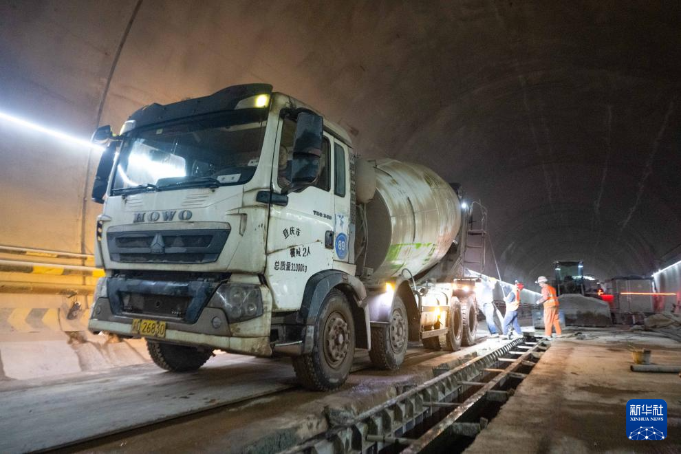 1月23日,工人在成渝中线高铁人和隧道内施工。