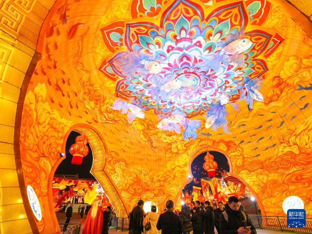 1月23日,游客在四川省自贡市中华彩灯大世界观灯。