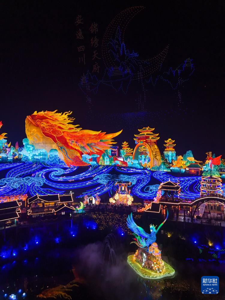 这是1月23日在四川省自贡市中华彩灯大世界拍摄的“神奇华夏”主题灯组(无人机照片)。