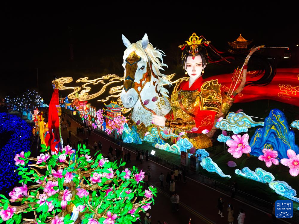 这是1月23日在四川省自贡市中华彩灯大世界拍摄的“木兰传奇”灯组(无人机照片)。