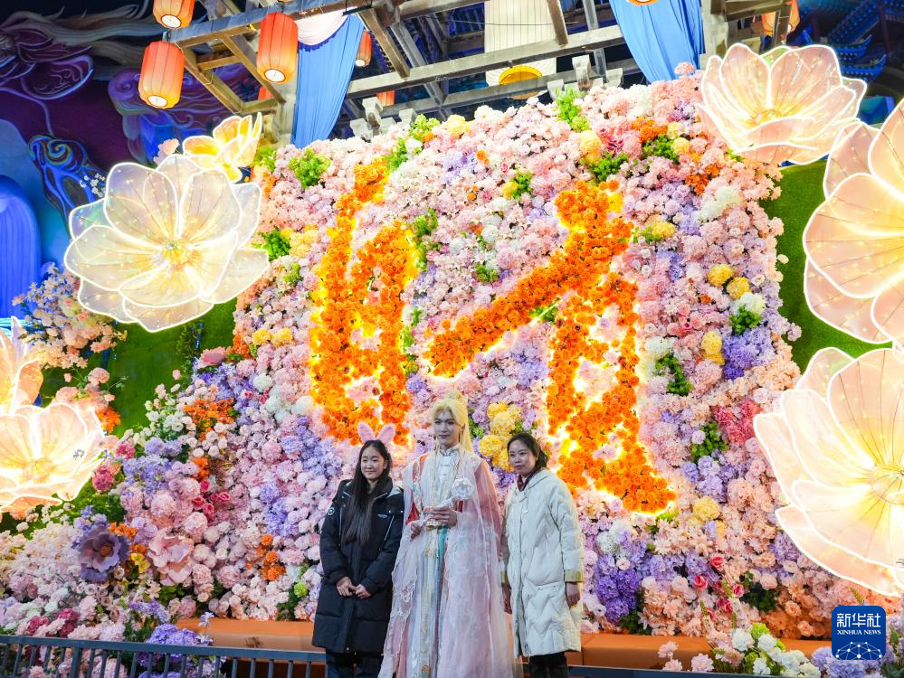 1月23日,游客在四川省自贡市中华彩灯大世界合影。