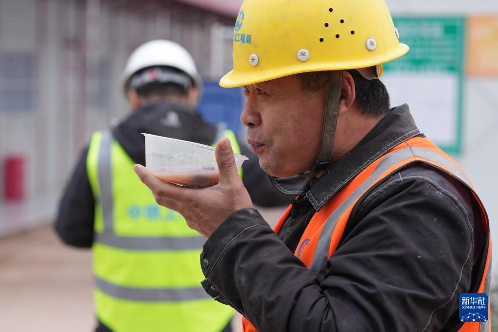 1月24日,中铁上海工程局建设者在品尝腊八粥。