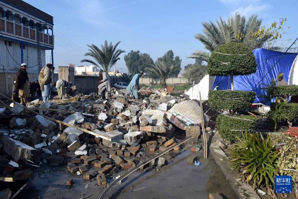 1月24日,在巴基斯坦西北部开伯尔-普什图省德拉伊斯梅尔汗地区,人们检查爆炸现场。