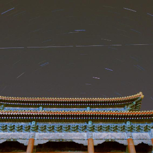 1月24日在北京使用智能天文望远镜拍摄的中国空间站从故宫上空飞过的轨迹(画面中部横线)。