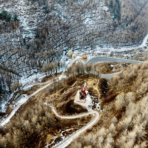 这是1月25日在宁夏固原市隆德县境内拍摄的六盘山红军长征旅游区一景(无人机照片)。