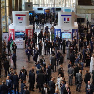 这是1月24日在利比亚首都的黎波里拍摄的第四届利比亚能源与经济峰会会场。