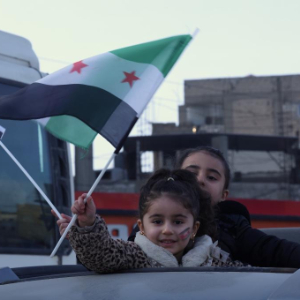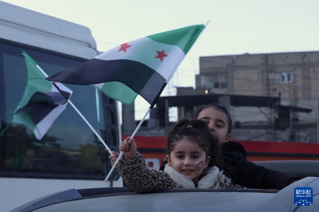 1月21日,在叙利亚东部拉卡省首府拉卡市,人们在达成停火后庆祝。
